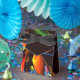 Blue Orange Floral Modern Abstract Art Pattern #03 Favour Box