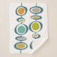 This fabulous mid century modern sherpa blanket features two sets of abstract hanging circles in the colours of turquoise blue, orange, tan, avocado green, gold, and blue. This will make a colourful addition to your home decor!