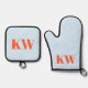 Blue Orange Monogram Initials Kitchen Gift Oven Mitt & Pot Holder Set