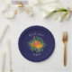 Blue & Orange Rose Floral Modern Wedding Paper Plate