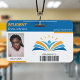 Blue and orange school id badge for primary school, college or university students. Customise the colours, text and images to personalise them for your school. Change the titles to create badges for teachers, professors, guidance counsellors, etc.