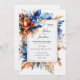 Blue Orange Terracotta Floral Boho Elegant Wedding Invitation