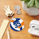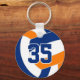 This team colours volleyball keychain features the image of a blue, orange and white volleyball on the front and a simple white volleyball on the back - personalise with the athlete's jersey number on the front and name and team name on the back - by katz_d_zynes