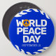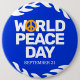 Celebrate the International Day of Peace (aka World Peace Day) on September 21 with this button, which shows a bright orange peace sign standing in for the letter O in world, encircled by laurel leaves on a calming blue background.