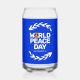 Celebrate the International Day of Peace (aka World Peace Day) on September 21 with this can glass, which shows a bright orange peace sign standing in for the letter O in world, encircled by laurel leaves on a calming blue background. Reverse shows identical design.