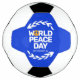 Celebrate the International Day of Peace (aka World Peace Day) on September 21 with this soccer ball, which shows a bright orange peace sign standing in for the letter O in world, encircled by laurel leaves on a calming blue background.