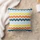 Elegant and modern bright yellow, orange, dark navy blue, light blue and white retro chevron zigzags stripes vintage pattern decorative throw pillow. Fully customisable, add your own text or photo for a truly unique home decor item.