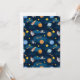 A whimsical and colorful seamless pattern featuring adorable watercolor illustrations of celestial objects on a dark blue night sky background with soft cloud effects. The design includes happy planets, rockets, a UFO, shooting stars, and asteroids, making it perfect for children's decor, apparel, fabric, accessories, and other print-on-demand items. This design is great for space lovers of all ages.
