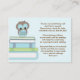 A cute little blue owl perches atop a stack of blue and green books on a soft baby blue background in this fun book request wishing well card. A charming poem requests that guests bring a book for the baby-to-be to start the new mum off with a library of beloved children's books. Just insert this sweet card inside the baby shower envelope, and your guests will know what's needed to start baby on the path towards reading.