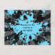 Cute postcard paintball birthday party thank you with blue and black paint splatters on a grungy grey, black, and blue sunburst patterned background.