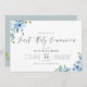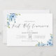 Blue painted flowers first communion invitation