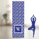 This bold paisley yoga mat showcases a twist on the vintage Persian pattern, with a more minimalist and modern feel. These vivid blue paisley shapes don't have the typical intricate detail of the classic Persian pattern, but instead are solid Paisley teardrop/feather style shapes against crisp white. The result is a clean, fresh, and modern 2-color pattern. The color is not as bright as royal blue but not as dark as navy blue. Your initial monogram appears in white against a block of blue with a double white border. Make sure to type your own initial to replace the placeholder.
