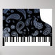 A funky light blue paisley covers this cute, chunky piano. A great poster for pianists, piano teachers and music lovers everywhere.