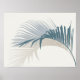 A palm leaf casts a shadow on the wall. Minimalist illustration (blue, gray and natural white)