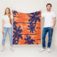 Blue palm silhouette, orange background fleece blanket