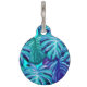 Blue with hints of purple, Tropical Palm Tree Leaves pet ID tag personalised with your pet's name.