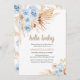 Celebrate the upcoming arrival of your little one with this Blue Pampas Grass Boho Baby Shower Invitation. Featuring a serene and minimalist design, this invitation brings together soft blue florals and pampas grass for a calming bohemian-inspired aesthetic. The blend of delicate blue tones and earthy pampas grass creates the perfect balance between nature and elegance. Whether you're hosting an intimate gathering or a larger event, this design sets a peaceful and stylish tone for your special day. BBS387