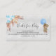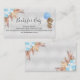 A bring a book request, ticket insert for a baby shower. A faux silver looking background. Decorated with light blue florals, pampas grass, and a teddy bear boy holding a blue balloon.