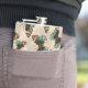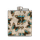 Blue Pansy Butterfly pattern on off white Hip Flask