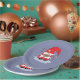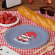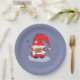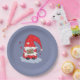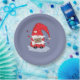Some fun blue-grey paper platess featuring a red gnome with a letter in his hands . It holds so much love , it spilling some hearts ... Perfect for Valentine's Day , anniversaries , or baby showers . Also available in white or pink .
