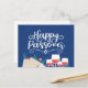 This postcard features a festive and inviting design perfect for the Passover celebration. "Happy Passover" is elegantly scripted in a playful, flowing white font that pops against the rich navy blue background. The design incorporates traditional Passover elements such as matzah, illustrated with fine detail, and a Star of David, providing a clear connection to the holiday's traditions.
