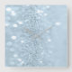 Blue Pastel Glitter Grey Metal Abstract Spark Square Wall Clock