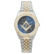 Stylish gold square and compass Masonic symbol with a black and blue background personalised watch.