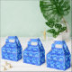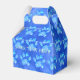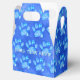 Blue paw print pattern. Custom party favour boxes for treats and gifts. Edit text to customise. Blue watercolor background.