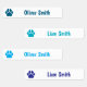 Personalized Kids Name Iron On Labels Blue - Prevent Mix-ups - These personalized iron-on clothing labels feature a cute paw print design in various shades of blue. Perfect for organizing back-to-school gear, daycare essentials, or summer camp wardrobes.