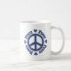 Peace mug with faded blue peace sign and hearts. Customisable colour coordinated text on reverse side, don't forget to edit! Choice of ceramic mug or travel mug styles.