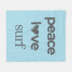 Blue Peace Love Surf Life | Coastal Surfer Graphic Fleece Blanket