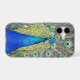 Trendy, protective phone cover for the Apple iPhone and features the photo image of a gorgeous, blue Peacock with colourful feather plumage. Select case for your iPhone model and select case style.