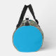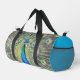 Travel or head on down to the gym in style with this small style duffle bag that features the image of a beautiful, blue Peacock with colourful feather plumage along with solid, light blue trim on side ends of bag.