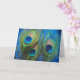 Neat close up picture of a thee peacock feathers taken with a fish eye lens. The soft colour of the eyes of the feather makes this photograph simply beautiful. Great card to give to the bride and groom to express your happiness to the newlyweds.
