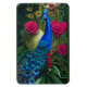 Blue Peacock in Pink Heart Rose Garden Magnet