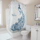 Add an elegant touch to your bath with a Blue Peacock Personalised Shower Curtain. Shower curtain is a visually striking bath accent, featuring a vibrant metallic blue peacock with iridescent feathers shimmer with hues of sapphire blue, and cobalt, creating a bold and luxurious focal point. Set against a grey grunge background, adorning the design are delicate white leaf botanicals, intricately woven around the peacock. These leaves add a touch of elegance and nature-inspired softness, softening the grunge background’s roughness while complementing the peacock’s regal presence. Elegant script lets you add your name or recipients name for a personal gift.