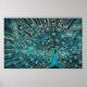 blue peacock with unfold tail poster
