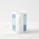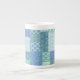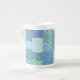 A chic Boho Bone China Mug, with a country-style Faux Patchwork of various pretty Periwinkle florals and coordinating Check Gingham patterns in Blue, Green and White. Part of the Posh and Painterly 'Periwinkle Patch' collection, this pattern can easily be adjusted to fit any Mug.