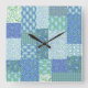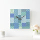 Blue Periwinkle Floral Boho Faux Patchwork Pattern Square Wall Clock