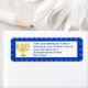 Stylish blue Menorah RETURN ADDRESS LABELS, showing gold coloured menorah against a blue background with a silver grey Star of David pattern. There is customisable placeholder text, so you can personalise with your own details. Ideal addition for your Hanukkah-themed cards and invitations. Matching stationery and gifts are available in the HANUKKAH Collection by Berean Designs.