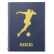 This blue notebook features a gold silhouette of a soccer player. Great as a birthday or Christmas gift for kids who love soccer. Ideal for homework, journalling etc. Use the design tools to customise the name and font.