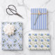 Blue Petal Symphony 3 Wrapping Paper Sheets blend peonies, stripes, and roses—ideal for elegant gifting, weddings, and spring celebrations.