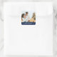Blue Photo Holiday Sticker. Elevate your heartfelt sentiments with our chic personalised photo holiday sticker. This stylish keepsake, featuring a vintage typewriter font and space for a family photo, is a perfect blend of nostalgia and style. White text on a navy blue background. Personalise and make your memories timeless!