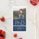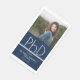 Photo PhD graduation paper guest towel napkins with a blue and white design. This item is part of a graduation party collection that includes an invitation, photo announcement, paper plates, place cards, and more. Customise these items, add them to your cart, and celebrate this major achievement.