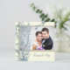 Photo Wedding vow renewal ceremony invitation in elegant blue and beige with delicate flowering tree blossoms pattern. Customisable with your ceremony details and your own photo.