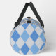 Pack your pickleball gear in this blue pickleball paddle design duffel, with blue argyll side panels. Add your name and monogram initial to the front side for a stylish and on-point fashion sports statement. Makes a great gift for the avid pickler on your gift list.