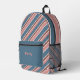 Blue Pink and Brown Diagonal Stripes Printed Backpack