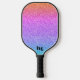 Image of a blue, pink, and orange glitter gradient. Custom monogram text in black.