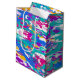 Captivating spin art designed gift bag featuring colourful shades of blue, pinks and yellows. Matching home decor and gift packaging are also available.