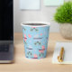 Blue boy and pink girl baby buggies paper party cups, it has a blue background for boy! Perfect for any baby celebration, such as birth, gender reveal, baptism and more!